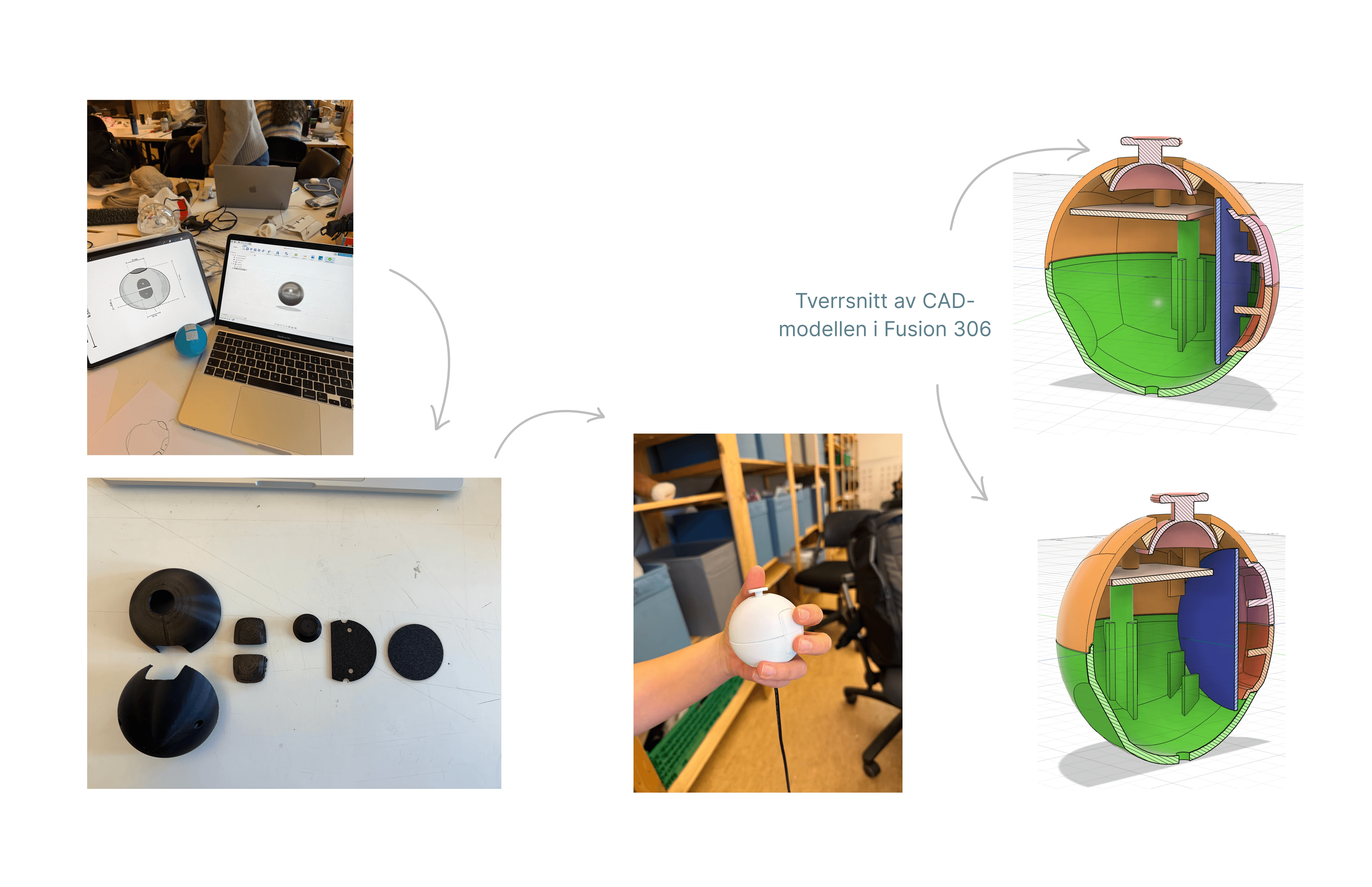 Prosessen omfattet idéutvikling, skissering, CAD-modellering og testing av flere prototyper med ulike produksjonsteknikker. Gjennom arbeidet utforsket vi hvordan designvalg påvirker produksjonsvennlighet, og utviklet en løsning som balanserer estetikk, ergonomi og teknisk realiserbarhet.