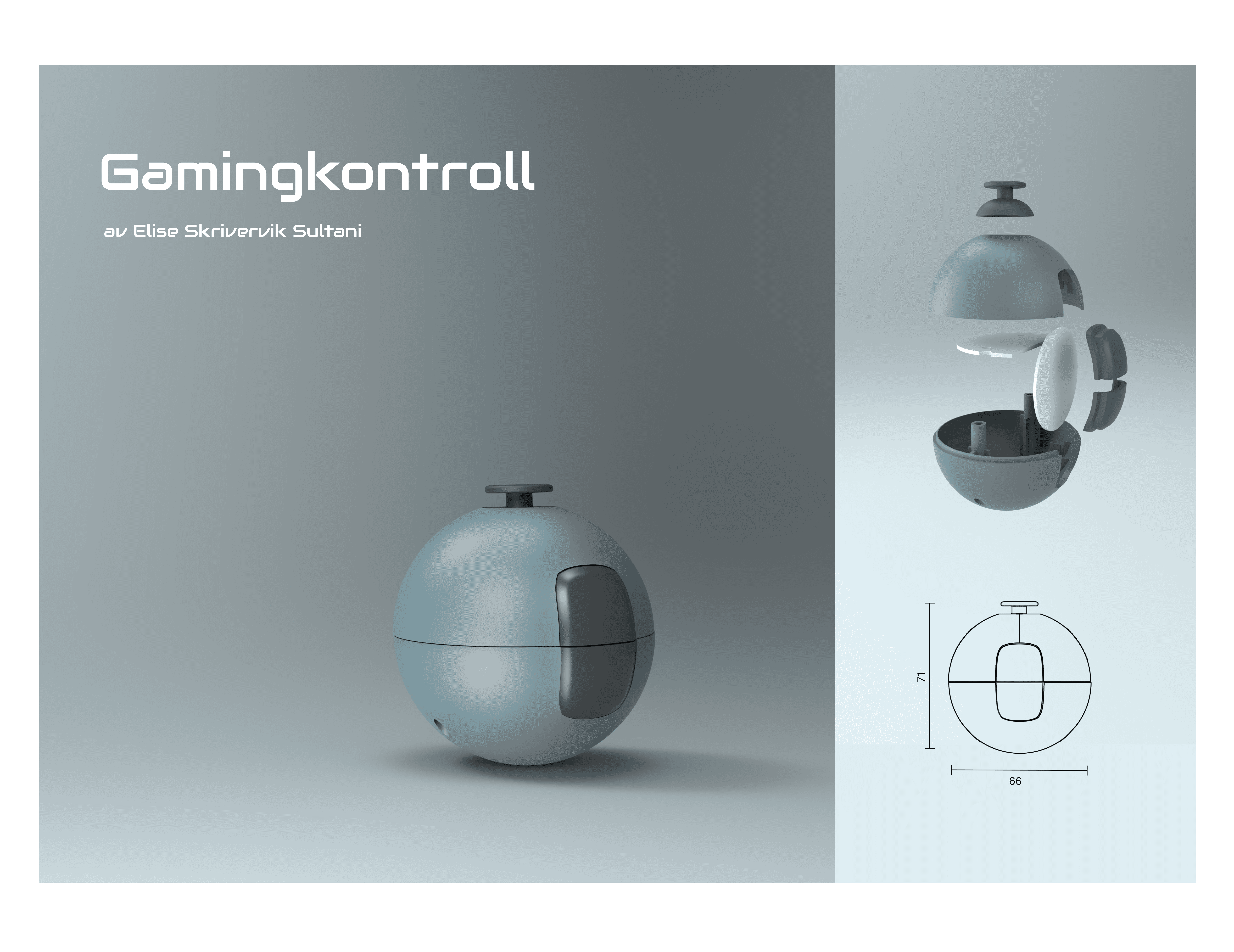 Vi designet en spillkontroll med fokus på form, ergonomi og produksjonsvennlighet. Gjennom skisser, CAD og prototyper tok vi hensyn til metoder som sprøytestøping og 3D-print, og tilpasset geometrien deretter.